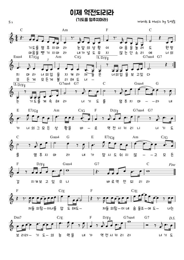 찬양 시간에 흘러나온 노래는 <이제 역전되리라> 였다.